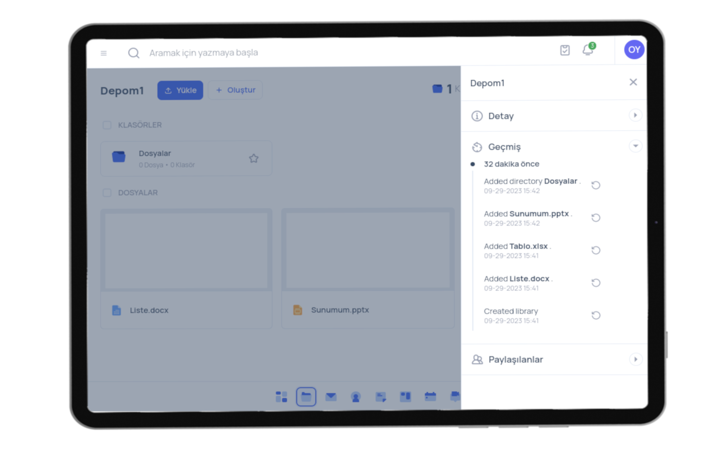 Yartu depo ile; dosyalarını, klasörlerini yada deponu diğer yartu kullanıcıları veya gruplar ile paylaşabilirsin. Paylaştığın kullanıcıların dosyalarına erişim yetkilerini sen belirleyebilirsin. Bu sayede ilgili paylaşımı saniyeler içersinde yapıp işine daha fazla vakit ayırabilirsin.