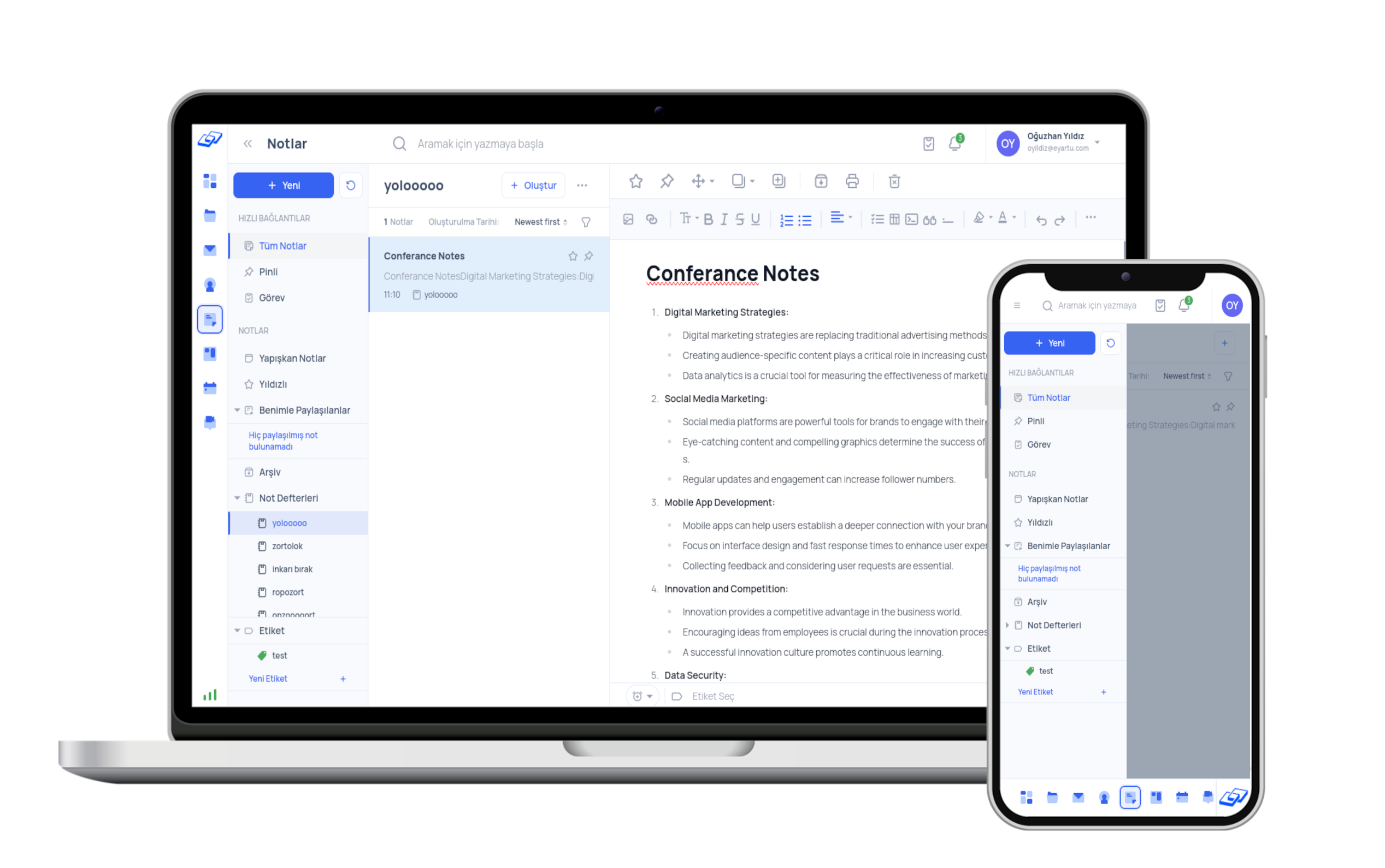Acelen mi var? Hızlıca yapışkan notları kullanarak aklındakini hemen not al. Her yerden ulaş. Toplantıda mısın? Gelişmiş yazı editörü ile detaylı notunu al takım arkadaşlarınla paylaş.