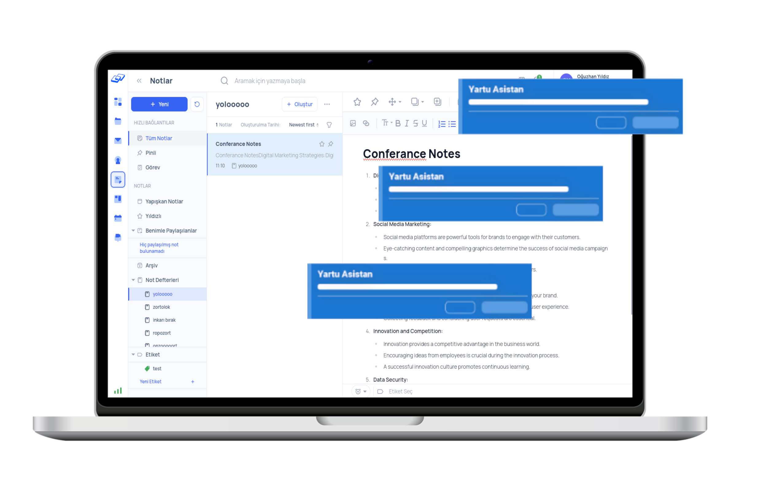 Notlarınızda, Yartu Asistanı kullanabilirsiniz. Belirlediğiniz zamanda size notunuzu hatırlatacaktır. Hiç bir notunuzu unutmayın.