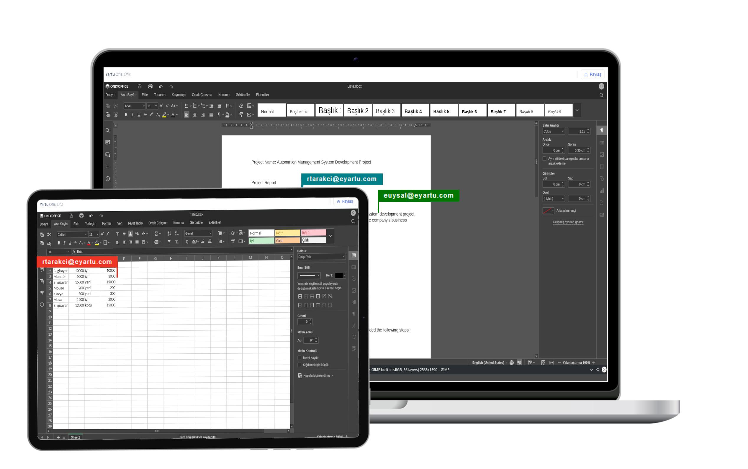Yartu Ofis ile birden fazla kullanıcı eş zamanlı olarak aynı dosya üzerinde çalışabilir ve her kullanıcı yapılan değişiklikleri anlık görüntüleyebilir.